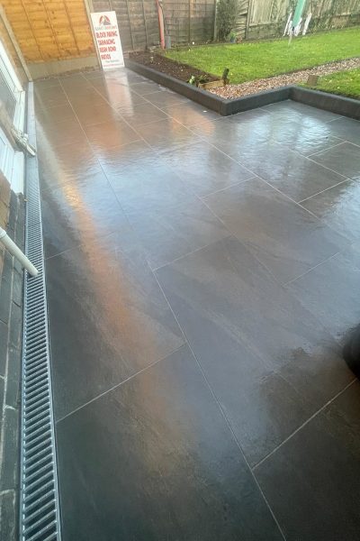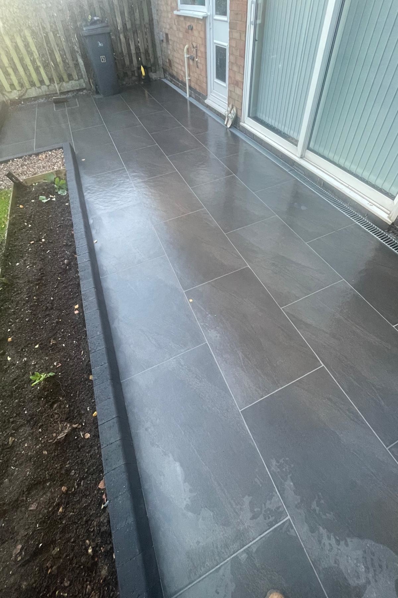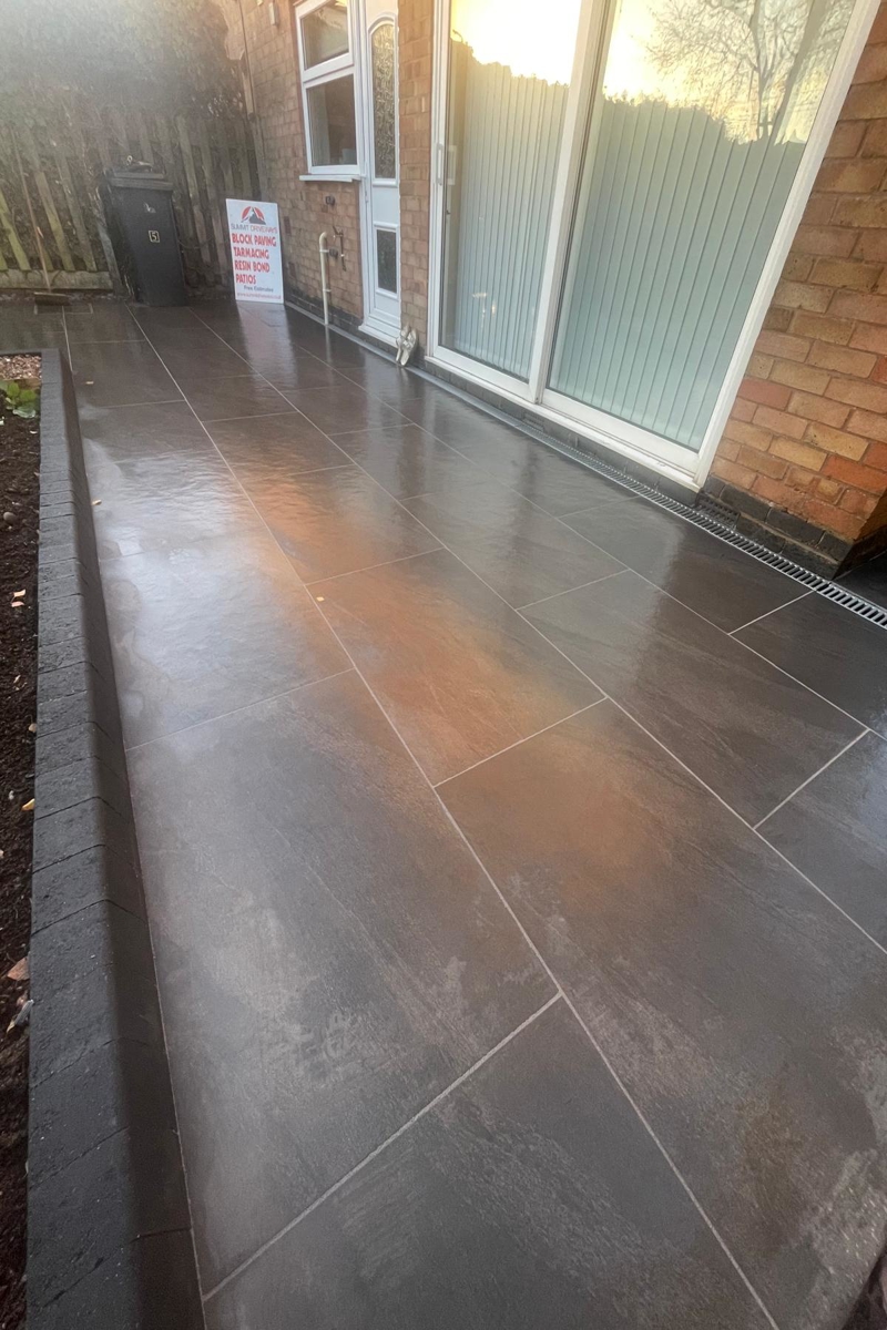 Porcelain Tiled Patio with New Drainage System in Rugby
