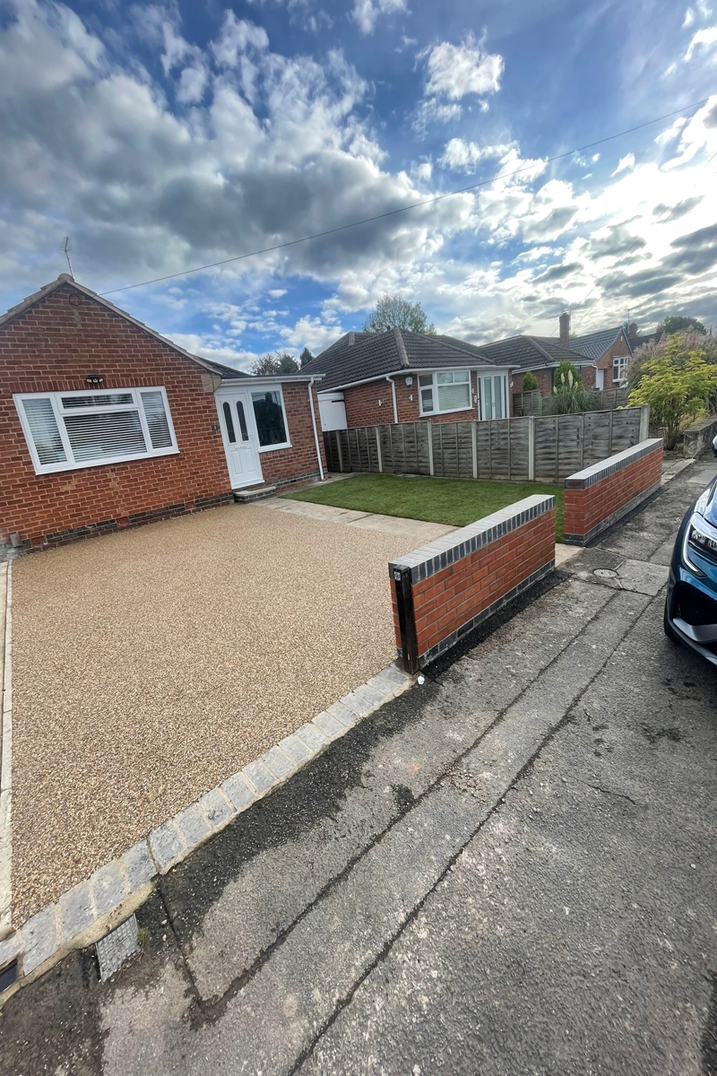 Dug out and removed driveway, Permeable membrane sheeting, New brick walling, Laid a UV resin bound surface